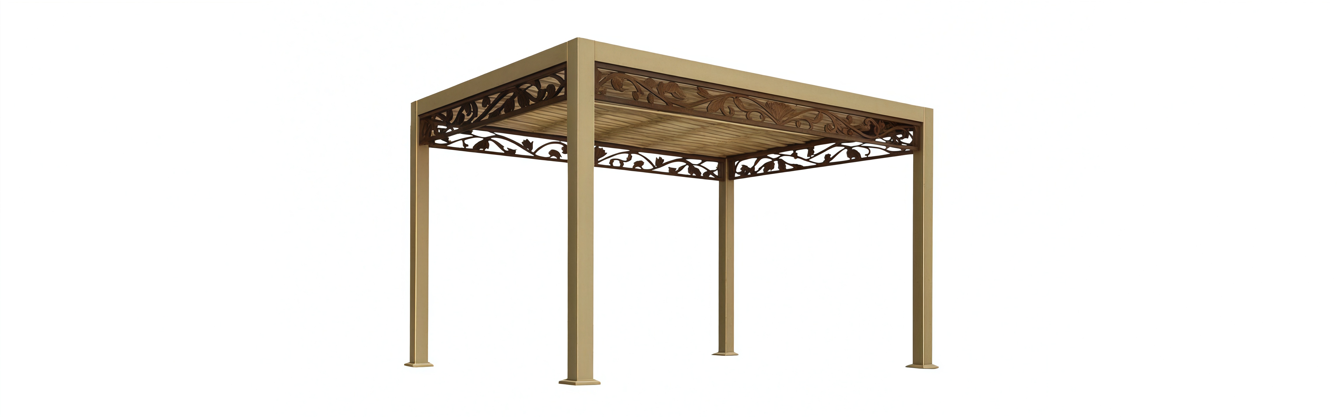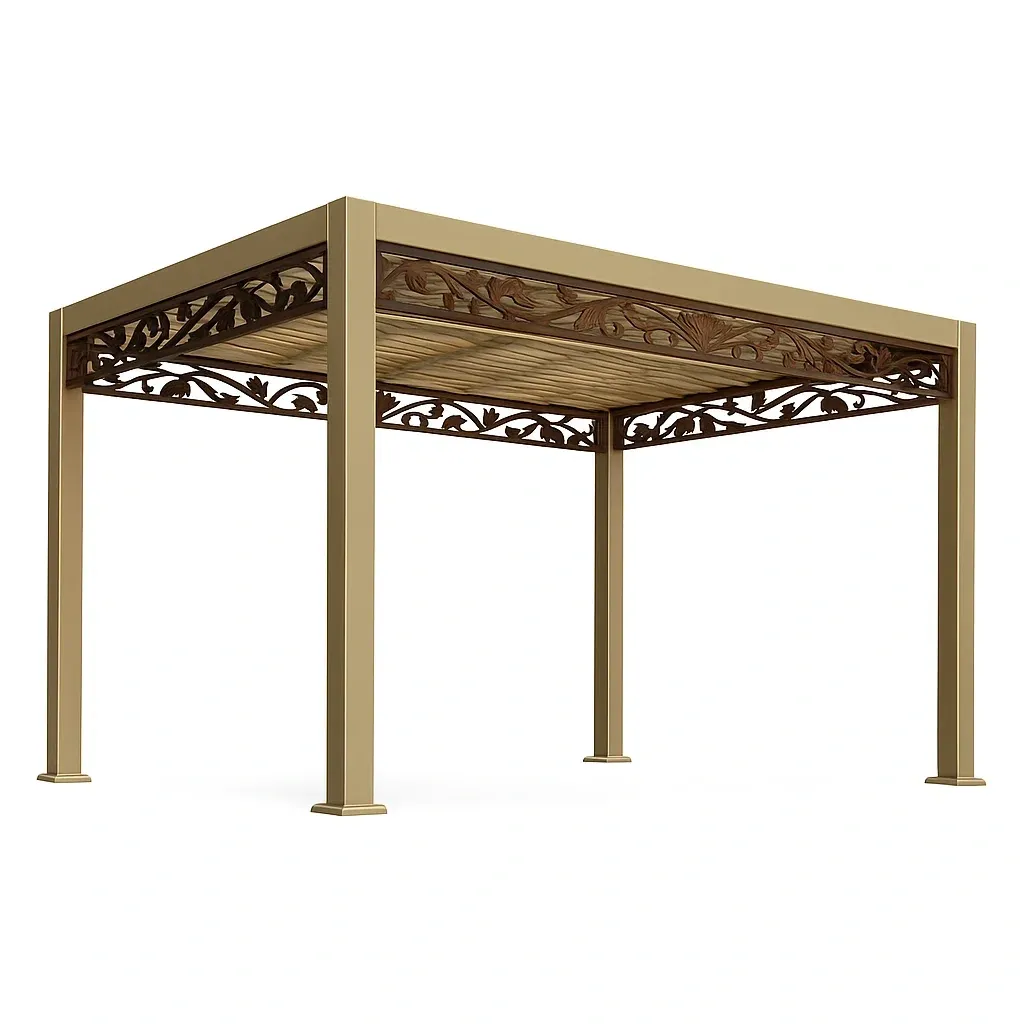 Pergolato quadrato in alluminio con decorazioni floreali